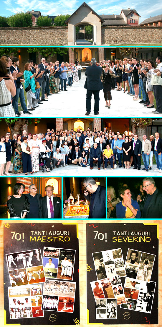 Ore 20 di sabato 1° luglio, il giardino del ristorante La Salette di Verderio ha ospitato allievi, amici e simpatizzanti della scuola di Karate Shotokan Ryu per un buffet in terrazza. La Salette di Verderio non e un palazzetto dello sport dove si tengono gare o una palestra dove si svolgono stage o esami, bensi un luogo molto piu elegante e raffinato, chi ha partecipato alla serata non si e presentato in karategi ma con abiti da sera consoni all’occasione. Gli amici si sono ritrovati all’insaputa del Maestro nel grande parco della Salette aspettando l’arrivo del festeggiato, che quella sera ha avuto una sorpresa dopo l’altra lasciandosi andare a piu momenti di commozione. Il suo settantesimo compleanno andava festeggiato in modo speciale; e stato un momento dove tutta la scuola si e voluta stringere intorno all’uomo prima che al Maestro di Karate, per fargli sentire tutto l’affetto, la stima e l’ammirazione che tutti noi nutriamo per una persona che e bella a 360° e non solo quando in palestra appassionatamente insegna! Perché tra le tante cose belle fatte ha saputo creare una scuola fondata su valori forti e sinceri, composta da un gruppo di persone unite, che rema all’unisono nella stessa direzione, legati da sentimenti d’amicizia e rispetto reciproco. La serata e trascorsa tranquilla ed allegra allietata dalla cantante lirica Akemi Sakamoto che con la sua splendida voce, accompagnata al pianoforte da suo marito il musicista Roberto, hanno impreziosito l’evento e affascinato tutti i presenti cantando alcune canzoni del loro ricco repertorio. Gli allievi dei corsi di Verderio, Merate, Concorezzo, Calolziocorte e dei collegi S.Antonio di Busnago e Villoresi di Merate hanno voluto fare gli auguri al Maestro attraverso alcuni video registrati nelle palestre, che sono stati mostrati dopo la mezzanotte e a cui si sono aggiunti i video con gli auguri del Prof. Gabriele Achilli, Presidente della FIKTA (Federazione Italiana Karate e Affini), del M° Mario Fanizza, grande amico del M° Colombo nonché a grande sorpresa del M° Hiroshi Shirai cintura nera 10 dan fondatore e caposcuola della FIKTA e massimo esponente mondiale del karate Shotokan, di cui il M° Colombo e allievo diretto. A questi sono seguiti gli auguri di tutti i presenti attraverso un intervento di Massimo Scandella, Vice Presidente della scuola Shotokan Ryu e allievo del Maestro Colombo da oltre 35 anni, che ha tradotto in parole il sentire di ognuno dei presenti, ringraziandolo per averci trasmesso la passione per questa bellissima arte e insegnato attraverso il suo esempio come la volonta, la determinazione, l’impegno e la costanza possano far raggiungere qualsiasi traguardo. Il M° Colombo ha poi concluso ringraziando tutti i presenti, ricordando il suo esordio nel karate insieme alla moglie M° Piera Motta con il loro primo insegnante, M° Gennaro Infiume, i primi allenamenti da subito quotidiani, prima in palestra a Sesto San Giovanni per 4 giorni e poi in un fienile sopra una carrozzeria a Verderio. L’interruzione maggiore di ben una settimana, a loro malgrado, e stata dopo due anni per il loro matrimonio. Ha ricordato momenti vissuti in palestra, ha ringraziato i suoi allievi piu “anziani” che hanno condiviso e continuano a condividere con lui un percorso iniziato tanti anni fa con tanto entusiasmo e passione, mantenendo lo stesso impegno e la stessa gioia agli allenamenti. Ha concluso il discorso sottolineando un concetto molto importante e significativo: in tutti questi anni le sue azioni e i suoi obbiettivi non hanno mai avuto verbi di coniugazione futura, ma bensi sempre presente, perché se qualcosa bisogna farla va fatta subito e non rimandata nel tempo. Quest’aspetto, piu di ogni altro, rende l’idea di che cosa vuole comunicarci dicendo che i traguardi si raggiungono solo con desiderio, volonta e determinazione. Tanti auguri M° Severino Colombo. OSS!!!! |